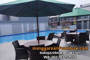 Set Meja Kursi Ritan sintetis w/ Payung Pool - Aston Bogor