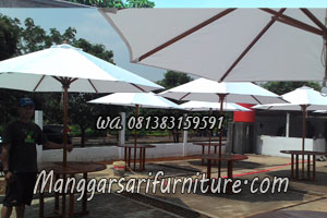 | Ukuran | : | Meja kotan 100x100x75cm Payung bilat diameter 120cm |